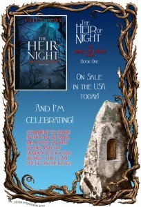 So now, as the grande finale of our blog party, I hope you will now all fill your glasses—at least in spirit—and drink with me: to the Muses and all the creative forms that they inspire, and to The Heir of Night going on sale today throughout the United States and Canada (and in Australia and New Zealand next week!)