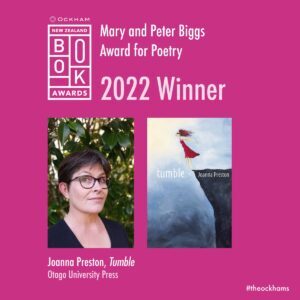 Very recently (11 May), Australian-born but Canterbury-based poet, Joanna Preston, won the Ockham NZ Book Awards’ Mary and Peter Biggs Award for Poetry, 2022.