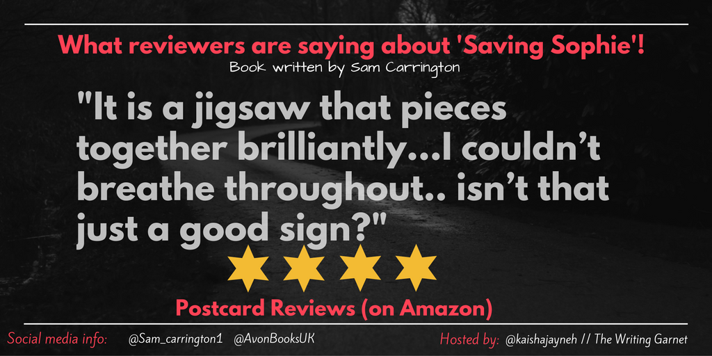 It's with huge excitement that I can tell you that the wonderful reviewer and blogger, Kaisha Holloway. has organised the most amazing tour for the paperback publication of SAVING SOPHIE! And it's coming in just under two weeks!