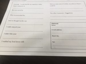 Feedback is a gift – here is a new look to the “happy sheet” or maybe “unhappy” from Hilton!