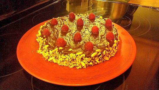 Sean doesn't venture into German territory in the book, but I have! Here's a two-layer raspberry torte with a chocolate ganache I've made: