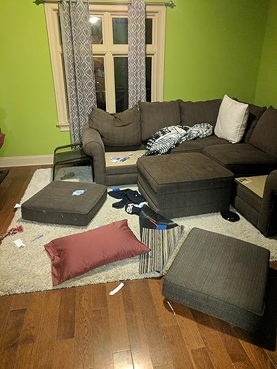 I know I've been kind of focused on writing updates. I thought I'd take a breather from that and do a general update. I've been making a ton of changes in my life.I've been into running for a long time, but I've never taken it seriously. For the past nine or ten years I've done some sort of running a few times a week. This could be a short as a few miles only once or up to a bunch of times culminating in a fourteen-mile long run.I know what you're thinking: that sounds serious! Not really. If you build up slowly, doing an "easy pace" long run isn't any more difficult than going for a two-hour walk. You'll be tired and sore afterward, but it's not a real struggle during it.So when I say I've never been serious, that means I've never really done the hard work to "get better." I've run a few half-marathons, but I had the intent to finish, not to get a good time. This summer I've decided to start trying to get better. I've introduced some speed training, and I'm doing yoga every day I don't run to build up some core strength and flexibility. I'm doing a 5K series where I run a 5K race every week for eight weeks. The goal is to try to get better times each week going into my half-marathon training season. Then I'm going to transition into focusing on running a 1:40 half-marathon. Anyway, I know most of your eyes probably glazed over at that.I'm also trying to get more organized. I'm a pretty obsessive person, so doing this could do more harm than help. I started a "journal." It's not so much for feelings or what I did for the day. It's just a way to get organized.I set it up so that I have yearly goals which I break into monthly goals which I break into weekly goals which then gets turned into a daily to-do list. I know. This sounds crazy, but it's a way to make sure I'm always on track for longer-term goals in my day-to-day activities. I've had too many months in the past where I consistently do things every day only to realize I've accomplished nothing relevant.Here's an example. Say I want to make sure I post something on this blog twice a month. That gets put into the weekly breakdown at the start of the month. Then when I make the daily to-do list, it is placed on a specific day. It will get done, and that goal is guaranteed to be accomplished. In the past, I've gone two months without blogging, and I just totally forget to check when I last did it.I also use the journal to keep track of book ideas or blog ideas or books to read and what I thought about them. I also use it for some longhand free writing to get the ideas flowing. It's just become a convenient way to keep track of everything.Anyway, one day I came home from the store, and the dog was feeling particularly destructive: