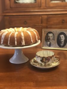 Grandpa and Grandma with Grandma’s favorite tea cup and her Hot Milk Sponge Cake
