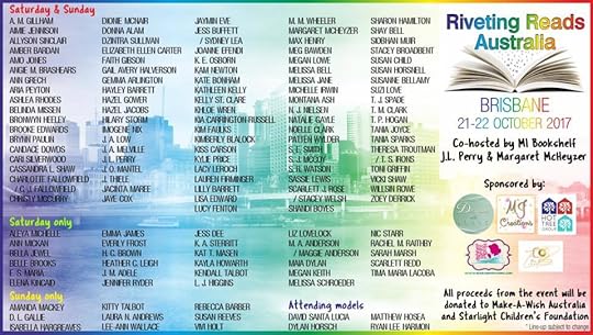 Hello everyone!For my first blog post, I'm excited to announce that I'll be at theRiveting Reads Australiabook-signing event!The event will take place on the 21st-22nd of October 2017 which gives me plenty of time to organise some awesome swag and hopefully a couple more books! :PAs you'll see on this pic, I'm only signing on the Sunday, but I have bought a ticket to the cocktail party on the Friday night.Tickets are on salethis Monday the 31st of October!Hope to see you there!Laura x