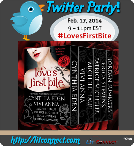 If you’re free tonight, come join me and fellow LOVE’S FIRST BITE authors at our Twitter party!