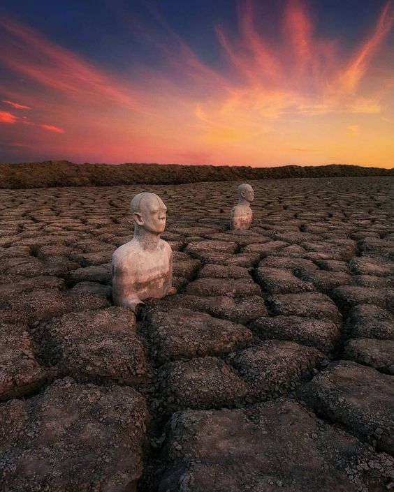 This week's photo prompt was taken by Arif Ikhwani, an Indonesian photographer. He took these in in Sidoarjo, Indonesia. These are sculptures by an Indonesian artist Dadang Christanto, which were erected on the site to represent victims affected and have been slowly submerged by mud oozing from a mud volcano that is still erupting.