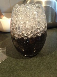 She looked at the gel balls in the glass, how they were clear at the top and grew darker r as they reached the bottom – although the ones at the bottom weren’t gel, they were metal.