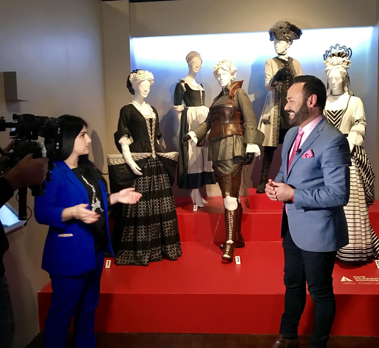 TV Azteca Noreste Mexico--Filming TV segments with Antonella Michelena of "Info7 Monterrey" TV Show on TV Azteca Noreste, FIDM Museum's 27th Annual Art of Motion Picture Costume Design Exhibition--FIDM Museum, Los Angeles CA