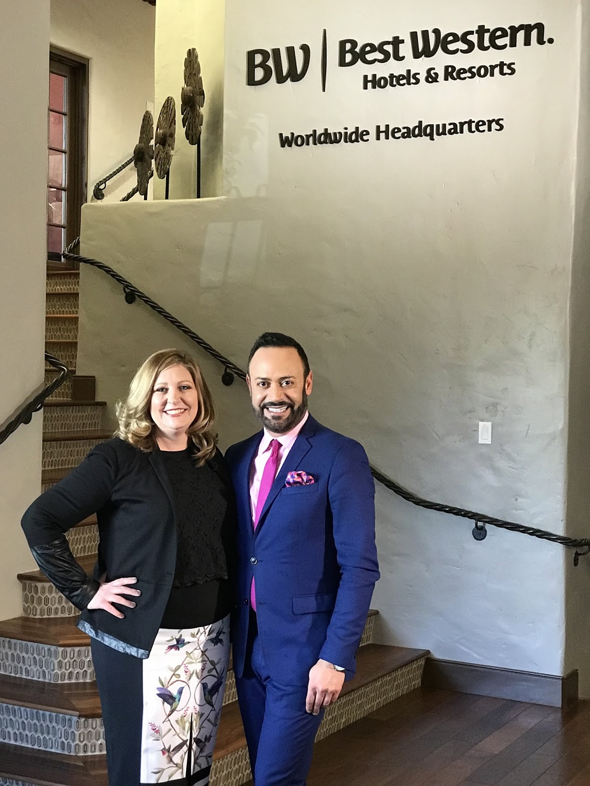 Travel Pair--(L to R) Amy Hulbert, VP of Boutique and Upscale Brands, Best Western Hotels & Resorts; Nick Verreos--Best Western Hotels & Resorts Worldwide Headquarters Phoenix Arizona