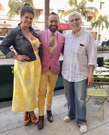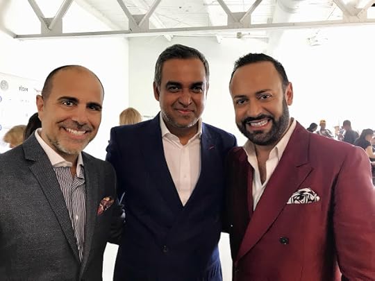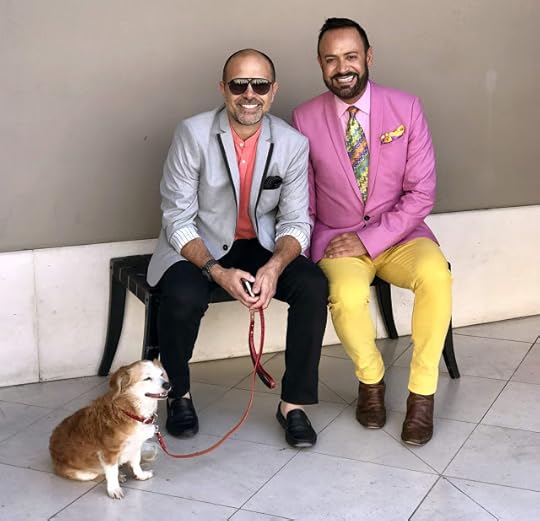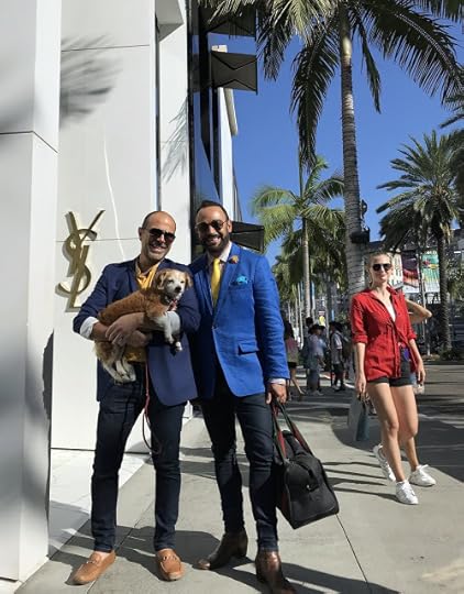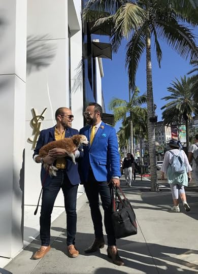 Rodeo Drive Portrait--(L to R) NIKOLAKI design duo and FIDM Co-Chairs of Fashion Design David Paul and Nick Verreos with their "Prince Benny"--Luxe Rodeo Drive Beverly Hills Hotel