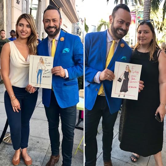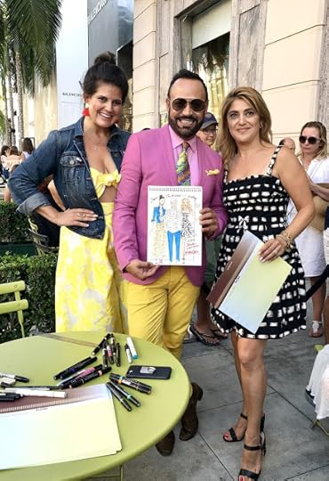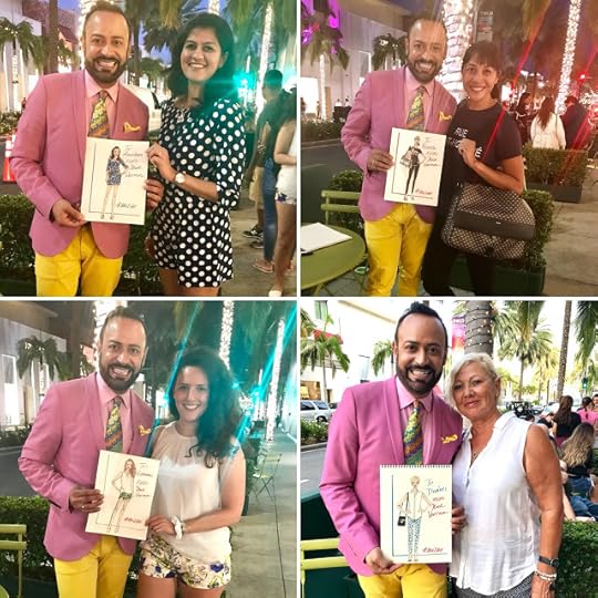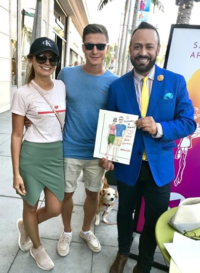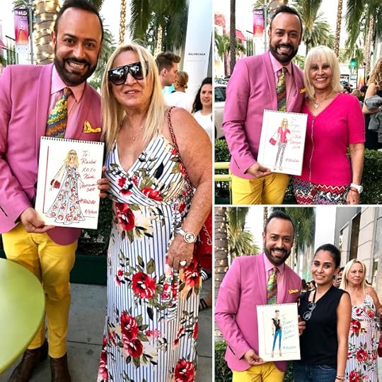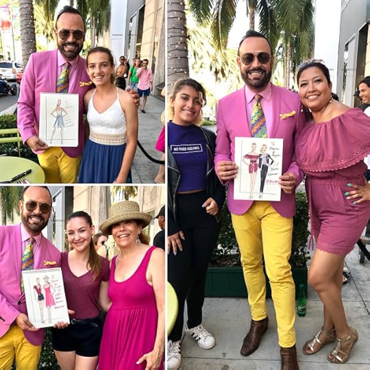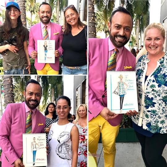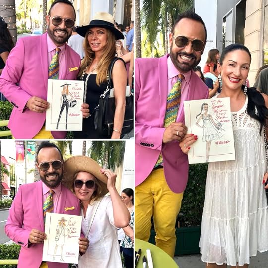 Nick Verreos with Rodeo Drive shoppers and their original Nick Verreos fashion sketches--"Bold Beverly Hills" FIDM Sketch Artists Event, Rodeo Drive Beverly Hills