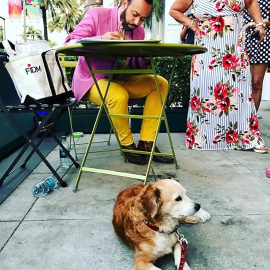 Official Sketch Line Monitor--Benny (my little pupster) monitoring the line of Rodeo Drive shoppers waiting for a sketch at the "Bold Beverly Hills" FIDM Sketch Artists Event, Rodeo Drive Beverly Hills