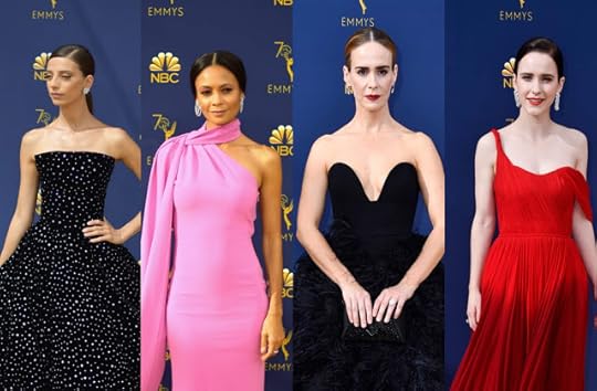 Angela Sarafyan and Thandie Newton of HBO's "Westworld", Sarah Paulson of FX's "American Horror Story" and Rachel Brosnahan of Amazon's "The Marvelous Mrs. Maisel"--For my complete list of 2018 Emmy Awards Best Dressed, click HERE!