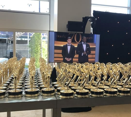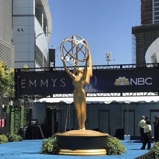 I watched the 2018 Primetime Emmys Red Carpet (it was actually gold colored) from the KTLA News "Emmys" headquarter vans located offsite near the Microsoft Theater and then, I went over to what was called the "Winners Circle"--an area adjacent to the 2018 Primetime Emmy Awards, where the winners would be rushed in to get their actual Emmys Statuette as well as greet the world's media...