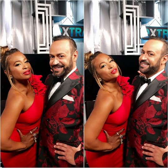 Posing Buddies--Nick Verreos with EXTRA TV Show's Tanika Ray--2018 Emmy Awards, Microsoft theater Downtown Los Angeles