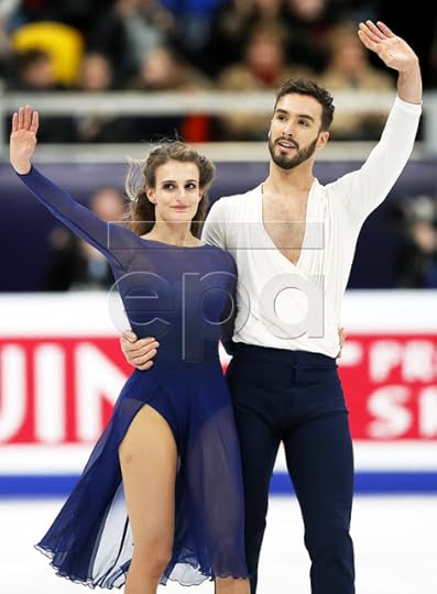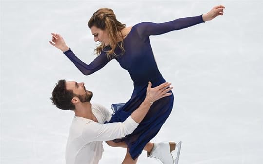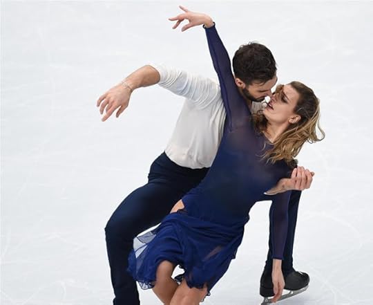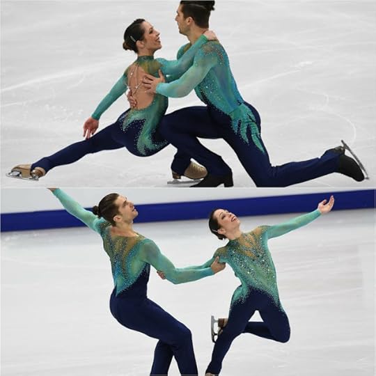 Gabrielle Papadakis and Guillaume Cizeron of France Free Skate to Piano Sonata N. 14 in C sharp minor, Op. 27, No 2. "Moonlight Sonata", Adagio Sostenuto, by Ludwig van Beethoven performed by Steve Anderson--I LOVE LOVE LOVE these costumes worn by the fabulous French Ice Dance pair of Papadakis and Cizeron. These costumes are subtle, beautiful, elegant, and PERFECT. Her softly flowing chiffon dress with Lycra bodysuit was sublime and fluttered with the dance like a gorgeous bird flying through the wind. And Guillaume...huney, where do I begin? That side cowl drape top was FIGURE SKATING COUTURE Fab; sexy, elegant, draped. I love that for the Free Dance, HIS costume was actually THE STAR.