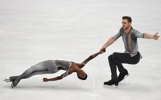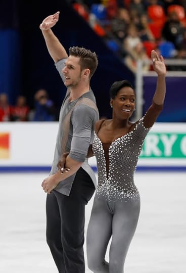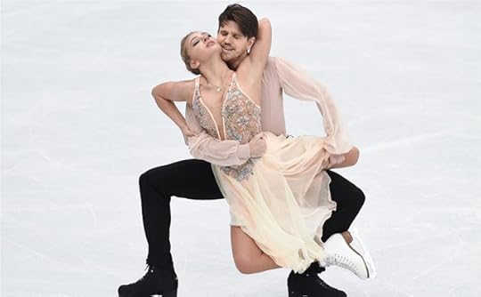 Alexandra Stepanova and Ivan Bukin of Russia Free Dance to Love Story Theme, Love's Dream by Rick Wakeman, Liebestraum No. 3 in A-Flat Minor, S. 541 by Franz Lizst, performed by Martin Jones: These costumes were pretty, and right for the music. The delicate blush pink color story hinted at love. At first I was worried that the color should have been stronger since their own skin color isn't too far away from that blush muted pink but, surprisingly it worked on them. I also loved the intricate, yet beautiful sequined flower applique on her torso which, once again, gave a nod to romance. His soft blouson-sleeve shirt (with a DEEP plunging neckline!) also gave a feel of Romanticism and Love. Their Free Dance was so intense that I was like "Y'all need to get a hotel suite!". They may have time since, it was just announced that Ivan, unfortunately WILL NOT BE going to the Pyongchang Winter Olympics (illegal substance perhaps?).