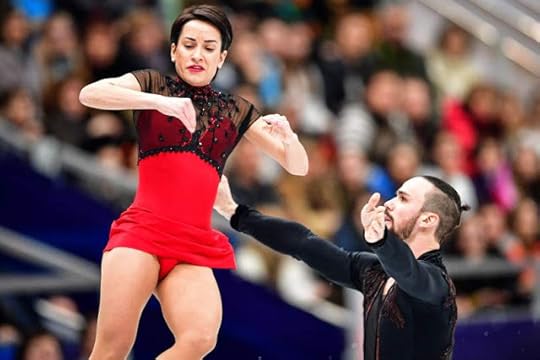 **NEW COSTUMES ALERT** Anna Cappellini and Luca Lanotte of Italy Free Dance to Biongiorno Principessa (from "La Vita e Bella" soundtrack), Life Is Beautiful (from "La Vita e Bella" soundtrack) by Nicola Piovani, arranged & performed by Mi Loco Tango, and La Vita e Bella (from "La Vita e Bella" soundtrack) by Nicola Piovani arranged by Claudio Mandonico--Cappellini and Lanotte are known for their very Italy-centric Ice Dances and this Olympic Season was no exception for their Free Dance. The costume she wore at this past weekend's 2018 European Figure Skating Championships was a NEW COSTUME...yet his stayed the same. Her new costume was a red dress featuring a gathered torso, satin underbust band, 3/4-length sleeves and a gored skirt. This was much improved from what she previously had been wearing: a sad, yawn-inducing ivory lace-top dress: