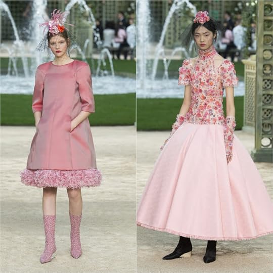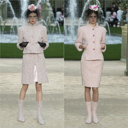 WHAT: Chanel Haute Couture Spring/Summer 2018. Karl Lagerfeld's vision of feminine, pretty Parisian women...wearing Chanel Haute Couture $40,000+ suits and dresses of $100,000+, if you were to order them. Look closely to the hand-done details...they are worth EVERY Euro!