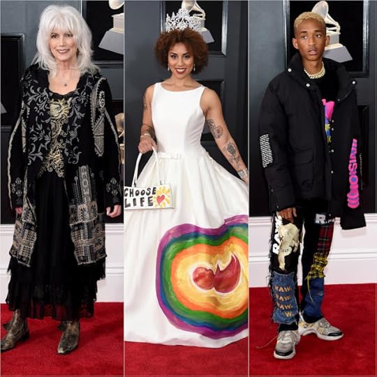 Ummmm...(L to R) Emilou Harris, Joy Villa and Jaden Smith--Grammy Awards 2018 Red Carpet, Madison Square Garden NYC