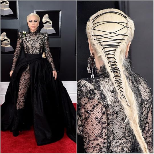 1. Lady Gaga in Custom Armani Prive--Lady Gaga was BY FAR my Number one Best dressed at the 2018 Grammy Awards red carpet. When she arrived, it was like "Make room for THE QUEEN Ladies and Gentlemen!" Lady Gaga wore a black lace and jacquard satin ensemble Custom made by Armani Prive. The look featured a beaded lace bodysuit/jumpsuit with high neck, sleeves and very structured shoulders held up by 80's style shoulder pads. The ensemble also had a voluminous overskirt finishing off the style. She was giving Goth Vampira Diva 80's Couture!