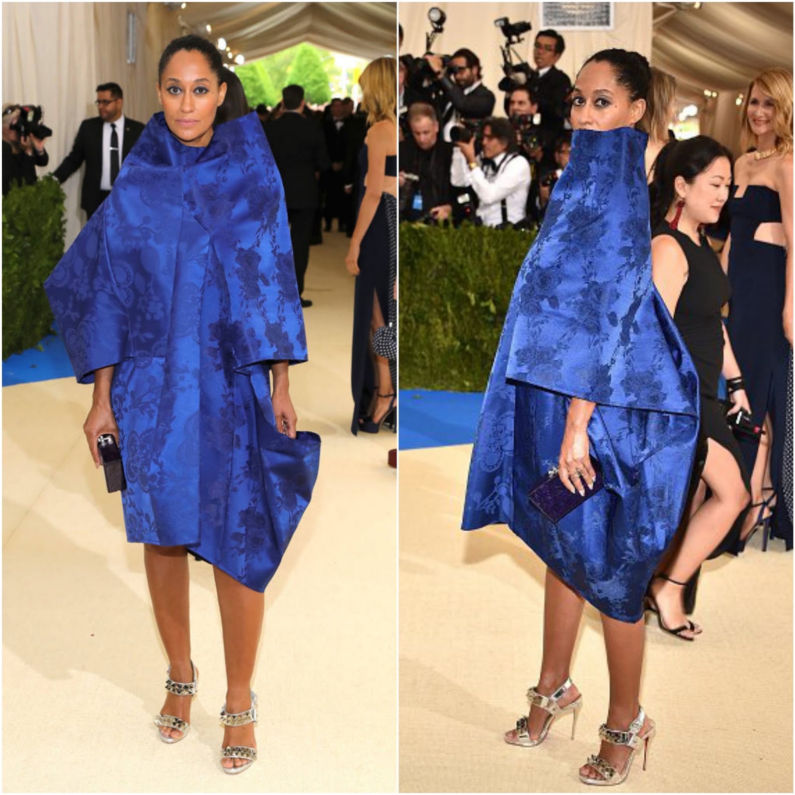 Tracee Ellis Ross in Comme des Garcons: I LOVED this bold blue coat on Tracee Ellis Ross. She gave you fabulous; she gave you Fashion Diva, she gave you QUEEN huney! I admired the simple cocooning-like effect and what a fabulous statement it made. I have never seen Miss Ellis Ross look soooo CHIC. This jacquard coat had the same effect as an Haute Couture Gown!