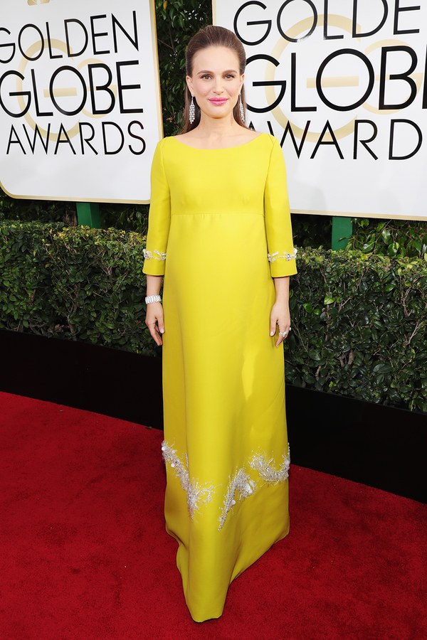 Natalie Portman in Custom Prada: Speaking of chic...Natalie Portman looked absolutely STUNNING in this chartreuse colored Custom Prada gown at the 74th Annual Golden Globe Awards. Portman was nominated for her role of the former First Lady Jackie Kennedy in the film "Jackie" and I love how she vibed the former First Lady's iconic elegance. The gown was very 1960's Alta Moda Couture in its shape, 3/4 sleeves and minimalist embellished detail; Portman looked like the wife of an Ambassador...in 1965. But still, so very now! Molto Bella!
