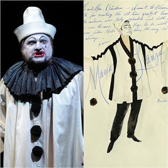 Alexei/Oleksii Bychenko Free Skate to Pagliacci by Ruggero Leoncavallo--For his Free Skate, Alexei donned this costume above for his "Pagliacci" skate. I have to say that this costume above looked more appropriate for "Hava Nagila" than "Pagliacci" (he skated to "Hava Nagila" for his Short Program). This was a bit "Village Extra in a Period Movie" and not really worthy of the opera. The "bloody" pant hems were a little...odd, to say the least. In general, I'm just not a fan of a BEIGE and black costume. Well, if there's any consolation...