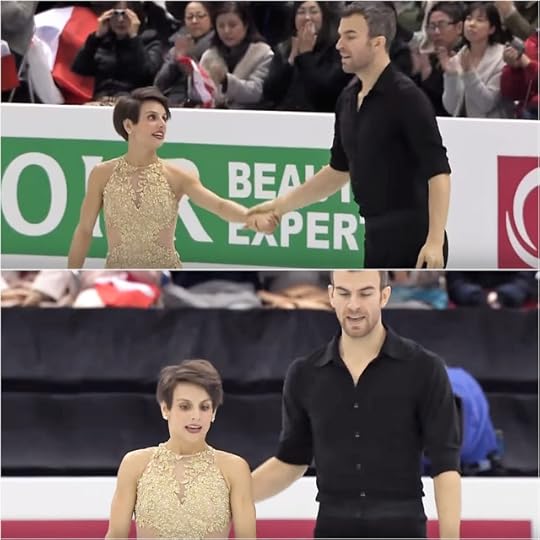 But, I guess they decided to change it up and go back to LAST SEASON'S Program (yes kids, these costumes and music were from last season's Short Program) and for this weekend's 2017-2017 Grand Prix Finals, they made the decision to go back to it. It was so "What the heck?" that even her Wikipedia page, has the other Short Program, listed as the one for this season. And yes, in case you're wondering I spend lots of hours looking up all this info, thank you very much! (I do try and do my research!). Anyhow, this is what they wore at the 2017-2018 Grand Prix of Figure Skating Finals and their "old-is-new-again" Short Program: