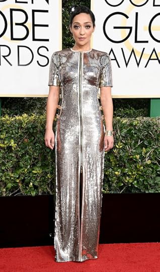 Thandie Newton in custom Jason Wu: Thandie was almost a "palate cleanser" in terms of a red carpet look--when compared to the elaborate fabulousness of Priyanka Chopra, and I loved it! The English actress wore this strapless ballgown and looked ethereal, Princess-like; simple, elegant, classic. The gown had this sequined tulle Point D'Esprit-like detail that added the right amount of sparkle to her dress. I also loved the modernity of what looked like a no-seam bustier (was it stretch Neoprene?). As a total look, she looked gorgeous.