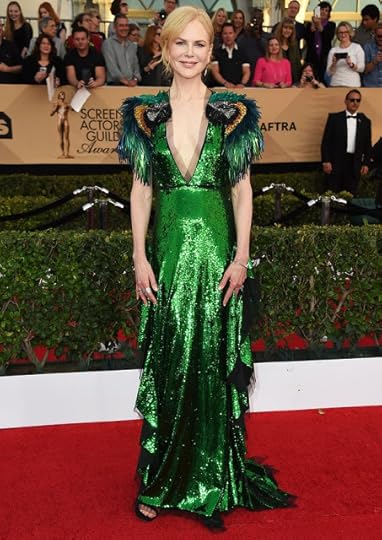 Nicole Kidman in custom Gucci by Alessandro Michele: Now I know that this may be a controversial choice but I loved this look on Nicole Kidman and thought it was such a definite "Fashion Moment", it was worthy of being in my BEST of 2017 Red Carpet List. God Bless Nicole Kidman for taking fashion chances; while other actresses might say "Ummm, I don't think I want to wear parrots on my shoulders", Kidman was ALL IN BABY! I loved this emerald green sequined gown and yes, I even loved the shoulder Macaw paillette-and-feathered embellishments. The gown reminded me of those 1930's designs from the beginning of the Hollywood Glamour days--it was very Schiaparelli and something the UBER stylish Wallis, Duchess of Windsor would have GAGGED over! Done and done.