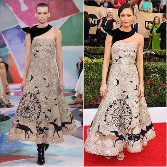 Thandie Newton in Schiaparelli Couture by Bertrand Guyon: This sequined dress was one of my favorite red carpet looks of 2017 and definitely, of the 2017 SAG Awards. This Haute Couture gown was all hand-made and included thousands of hand-sewn crystals and stunning horses, birds and even a Ferris wheel--all in crystals! And that silk velvet shoulder panel was the "Cherry on the Couture Cake". This gown should be in a museum...and I would stare at it for HOURS!