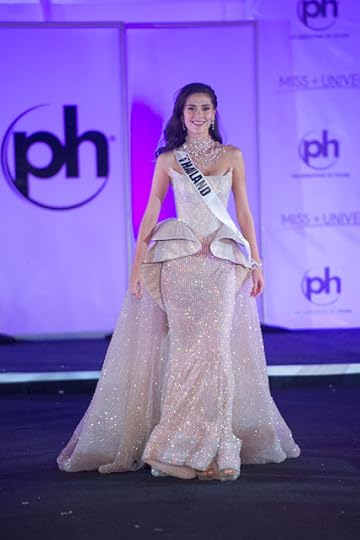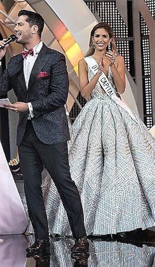 10. Miss Universe Venezuela Keysi Sayago: During her entire time in Las Vegas for the Miss Universe 2017 Pageant, Keysi was a fashion Diva...looking always styled to perfection at every event, rehearsal and restaurant photo-op. For the Miss Universe 2017 Preliminary Competition, she wore what turned out to be one of my TOP 25 BEST PAGEANT GOWNS of 2017. This silver/white sequined crinoline strapless design from Venezuelan designer Alejandro Fajardo. Alejandro also designed her national costume which I loved. The dress fit perfectly, hugged every part of her flawless figure and the shimmering white color stood out against her naturally tanned skin. I also loved the bun and earrings as well.