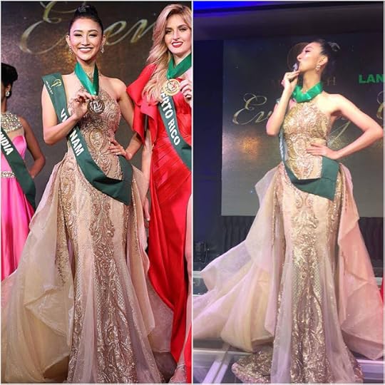 13. Miss Grand China Xuejia Chen: Xuejia gave you DRAMA, runway Diva and Pageant gown style when she wore this to the Miss Grand International 2017 Finals. I loved this golden/nude/blush colored sequined gown. The dress featured a "Nude"/golden base dress filled with cascading gold paillettes and a nude illusion back. She accessorized it with a dramatic sequined feathered cape that really "stole the gown show!". In fact, the judges at Miss Grand International 2017 voted this THE BEST GOWN of the night! And for all those above reasons, she is my No. 13 out of 25 Best Pageant Gowns of 2017.