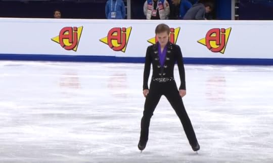 Skate Canada International 2017 (as well as Skate America 2017)--As you can also see, Eric's "costume" didn't change. He was still in a black shirt/black pants "Ross Dress For Less" Male Figure Skating 101 Look.