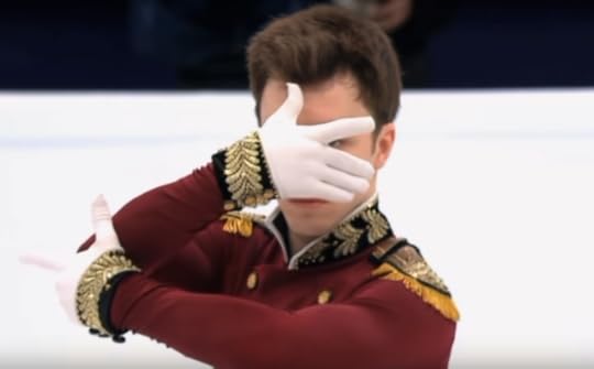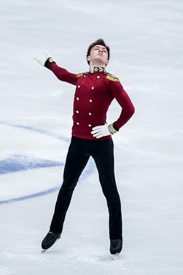 Dmitri Aliev of Russia Short Program to Masquerade Waltz by Aram Khatchaturian--I loved this costume worn by Russia's Dmitri Aliev of Russia for his Short Program. The "Admiral"-like costume featured a red/maroon colored double-breasted snug-fitting stretch jacket, gorgeous collar and cuffs with sequined appliques and those great frilly epaulets. With the accompaniment of the sweeping music and this costume, I was almost transported to a fabulous ball in Imperialist Russia.