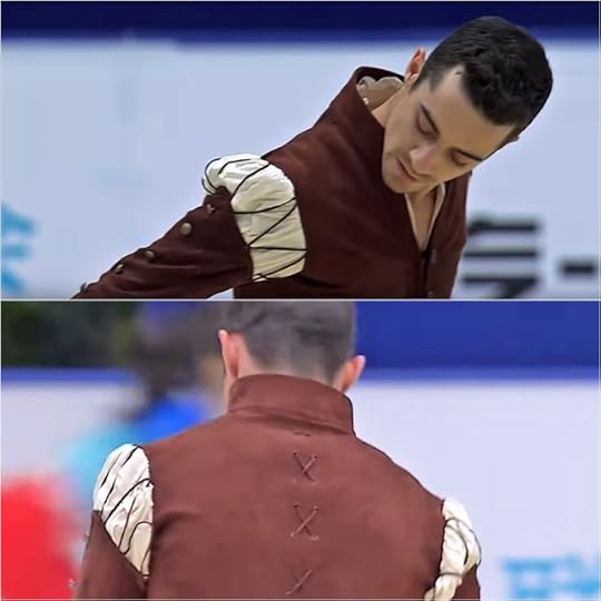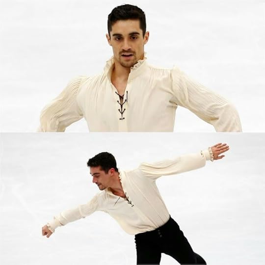 **NEW COSTUME ALERT** Free Skate to Man of La Mancha: For his Free Skate at the 2018 European Figure Skating Championships, Javier wore a new costume. This "Conquistador"-style costume was still appropriate for his music, featuring a very "Man of La Mancha" style. The new design featured a beautifully pleated blouse with ruffled neckline and sleeve cuffs, as well as high-waisted pants...