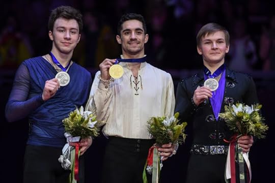 Congratulations to the Top Three Men of 2018 European Championships--(L to R) Silver medalist Dmitri Aliev of Russia, Gold medalist Javier Fernandez of Spain and Bronze medalist Mikhail Kolyada of Russia, all three will go to next month's Pyeongchang Winter Olympics. Good Luck!