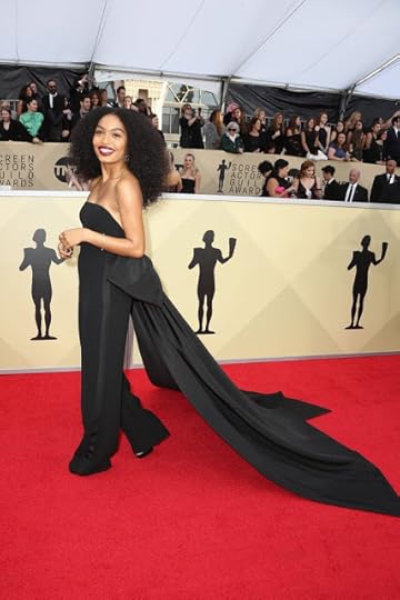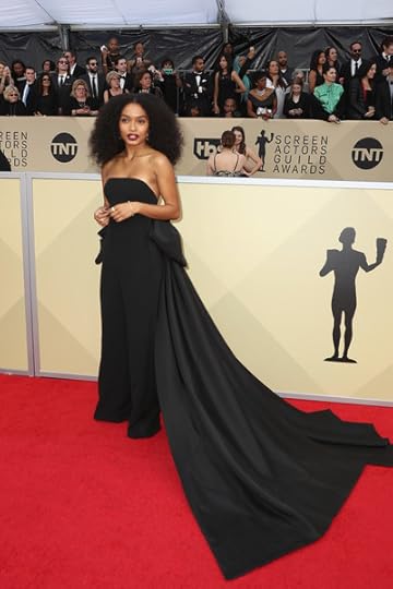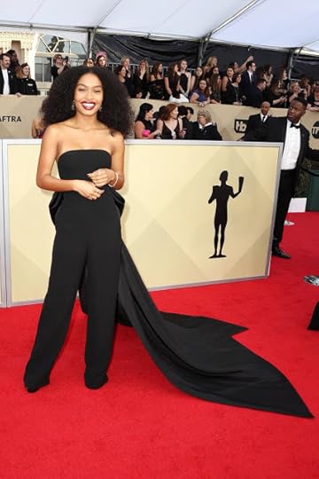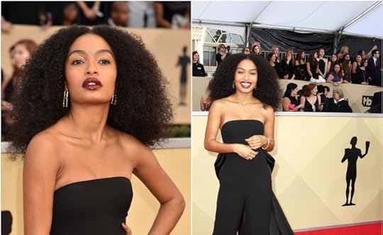 Yara Shahidi in Custom Ralph Lauren--"Black-ish" Actress Yara Shahidi made a FAB red carpet statement last night at the 2018 SAG Awards wearing A JUMPSUIT (Mon Dieu!). The black strapless jumpsuit was made for her by Ralph Lauren...