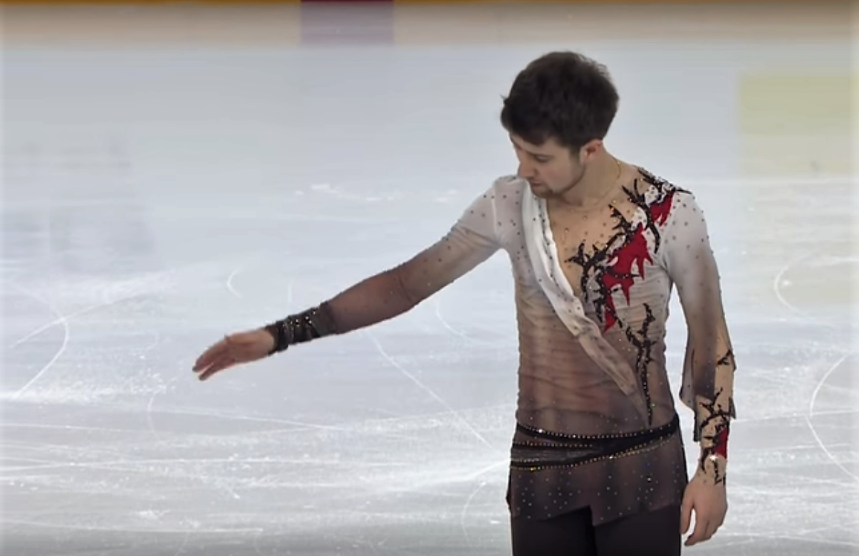 Dmitry Aliev of Russia: Short Program to Masquerade Waltz by Aram Khatchaturian. I loved this costume worn by Russia's Dmitry Aliev of Russia for his Short Program. The "Admiral"-like costume featured a red/maroon colored double-breasted snug-fitting stretch jacket, gorgeous collar and cuffs with sequined appliques and those great frilly epaulets. With the accompaniment of the sweeping music and this costume, I was almost transported to a fabulous ball in Imperialist Russia.
