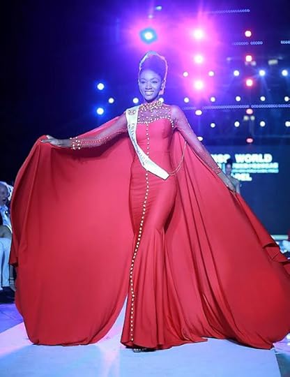 2. Miss World Cote D'Ivoire Mandjalia Gbane: Mandjalia wore this SUPER FAB gown above. Her runway presentation was EVERYTHING! She was not only beautiful but supermodel fab. The brick-red colored gown itself also was fab, featuring lots of drama with that outstanding cape and gold details. The fit was IMPECCABLE. Take a look at the length and where all the seams hit: Just right! Mandjalia served them Cote D'Ivoire Couture HUNEY!!