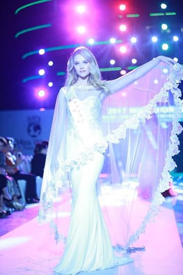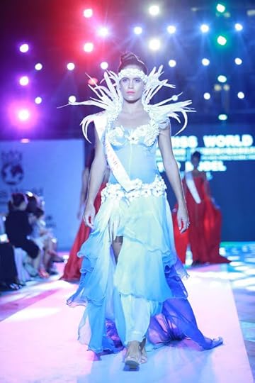 14. Miss World Canada Cynthia Menard: Cynthia wore this white fit-and-flare gown with a dramatic chiffon cape at the Miss World/World Designer Fashion Show and I thought it was a strong enough gown statement that I wanted to include it in my Top 15. She looked like a Runway Snow Angel in this look which was appropriate being that she was from Canada! The silver sequined lace scalloped hem trim reminded me of snowflakes and icicles and I also loved how she presented the design on the runway.