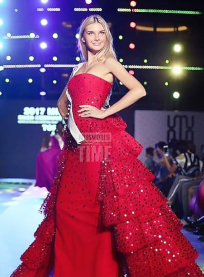 The Miss World Beauty Pageant has a fabulous fashion show showcasing the contestants modeling gowns created by designers from their home countries and this year they continued the tradition with all the 118 contestants doing just that. The designs were judged and a special award is given to the "World Designer" whose design was judged the best. On the same night, 30 contestants were chosen to compete in the Miss World Top Model competition with the winner being fast-tracked to be in the Top 40. The Miss World 2017 Top Model was the 6 foot+ tall Miss World Nigeria Ugochi Ihezue. She was so tall that the gown she wore from a featured Chinese designer was VERY SHORT (see photo below!).