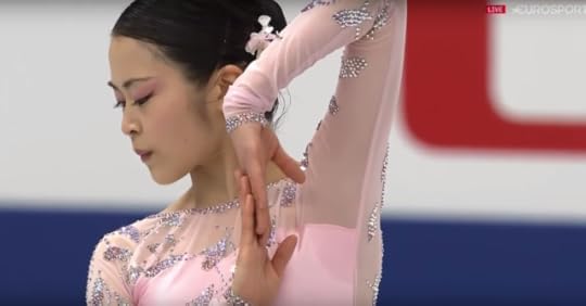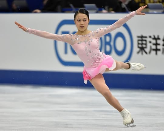 Satoko Miyahara of Japan: Japan's Satoko Miyahara wore this pink costume for her Short Program to Memoirs of a Geisha (soundtrack) by John Williams. It was quite delicate, subdued and pretty. There weren't any overt hints of a Geisha or Kimono. What we did see was a powder pink costume with beautiful petal-like silver rhinestones and dégradé pink skirt.