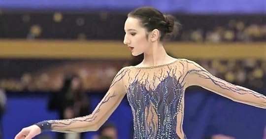 Polina Tsurskaya of Russia: One word--WOW. I LOVED this blue and nude costume worn by Russia's Polina Tsurskaya for her Short Program to Light of the Seven (Games of Thrones soundtrack) by Ramin Djawadi. The costume featured rhinestone-studded "branches" set on a nude illusion base with perfectly cut solid panels in blue violet. She looked like an Ice Queen--or a GORGEOUS White Walker from "Game of Thrones"...and I guess that was the point.