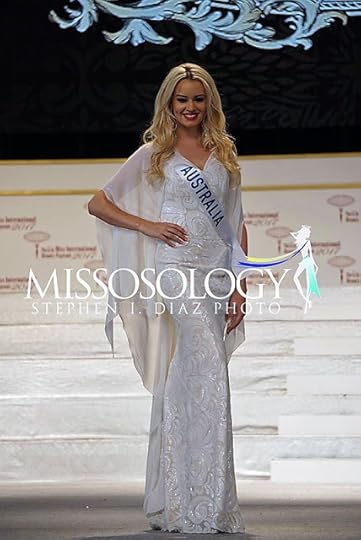 Miss World Cook Islands Alanna Smith: I wanted to add Alanna's gown here because it was "different', made a DEFINITE IMPACT as she came down the runway and for its quite glorious way of celebrating her South Pacific islands' flora and fauna. This could have been a perfect costume for her but...it also made for a very glorious gown choice. I absolutely loved the feathered and flowered details at the shoulders/neck/bust and her crown...and the pretty ombre dyed chiffon. This to me, was like the Cook Island version of a very elegant and Haute Indian sari. And for that, I wanted to give Alanna (and whoever designed this) props!