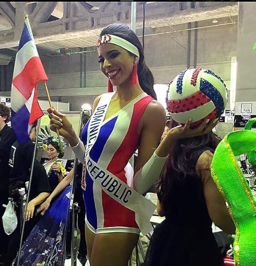Miss International Dominican Republic Jennifer Valdez: Jennifer's costume is depicting the Dominican republic national football team and a sexy leotard/onesie version of the team's jersey. She bedazzled the actual futbol (soccer ball) and the number on her jersey as well as her "sweatband".