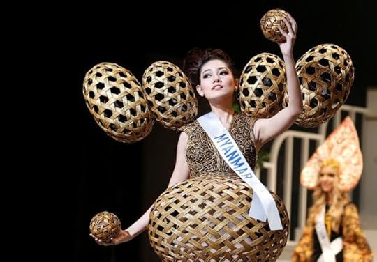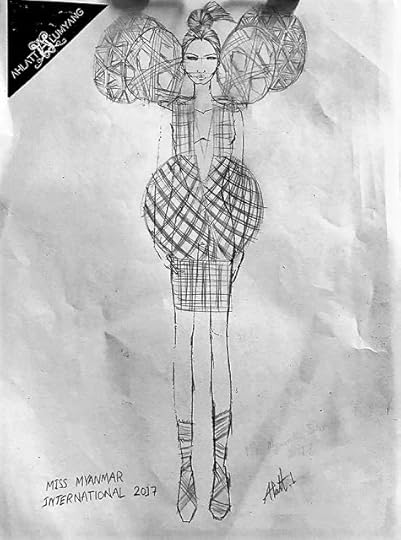 Miss International Myanmar Sao Yoon Wadi: Miss Myanmar International 2017 National Costume is inspired by Chin Lone - a type of sport (translated as rattan ball) from Myanmar. Chin Lone is a widely played sport and has been a part of the culture for a long time. The description on the Miss Myanmar International Facebook Page goes on to say that "The beauty about playing Chin Lone is the sport itself is not a competition among the players but for players to perform their parts well and in unity in order to maintain balance. Therefore this National Costume dress is created with rattan replicating the shape of Chin Lone to imply the peace and unity - the essence of the sport which agrees with the nature of Miss International crown". It was designed by Ahlatt Lumyaung (sketch above) and personally, I think it's quite unique and fun!