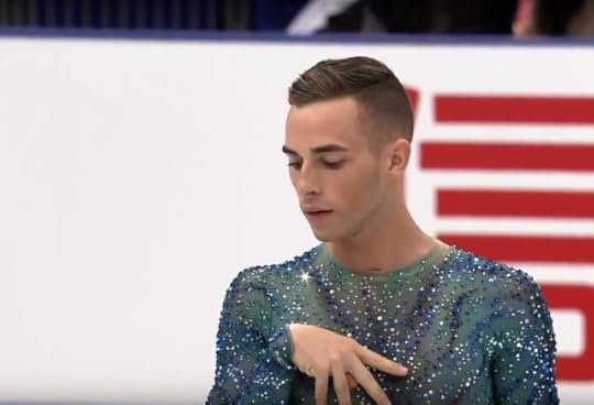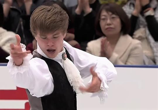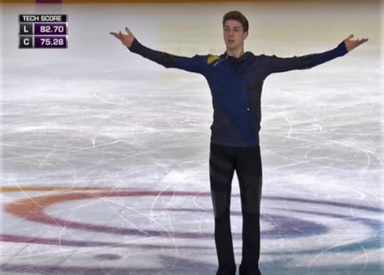 Free Skate to Sarabande Suite--This all-black look was a little better than his Short program costume--only because it looked sleeker and less like a just-out-of-fashion-school student designed it. I wished those "straps" on the shirt might have been studded in black Swarovski crystals and I'm not a fan of the gloves but...at least he DID NOT wear that tacky "Ross Dress For Less" 90s belt a lot of these male figure skaters cannot let go of! So, I am happy for the small things.