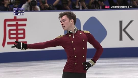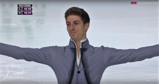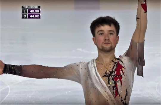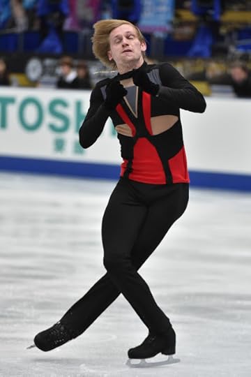 Sergei Voronov of Russia: Sergei skated his Short Program to Adios Nonino by Astor Piazzolla. This is a Tango and therefore, I assume Sergei was going for a "Modern Tango" look with his red and black costume. The top was a bit odd with the different panels and I was especially confused about the nude-like ones. Was this supposed to be skin-colored illusion? And if so, why the odd placements in the midriff and neck area? he looked a little more "Tron" than Tango.
